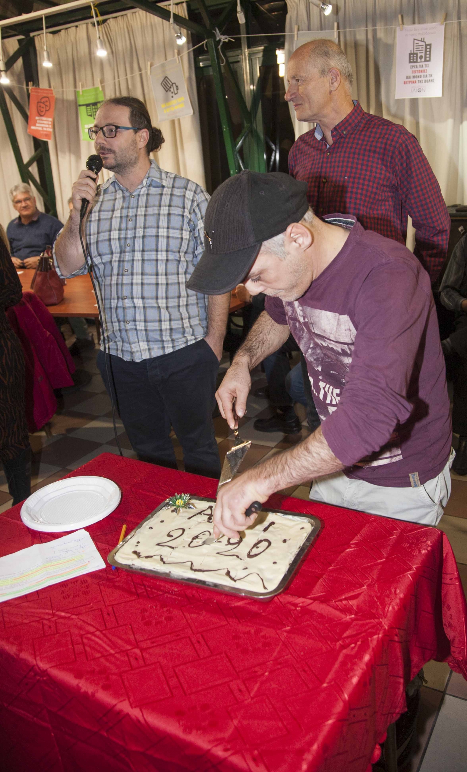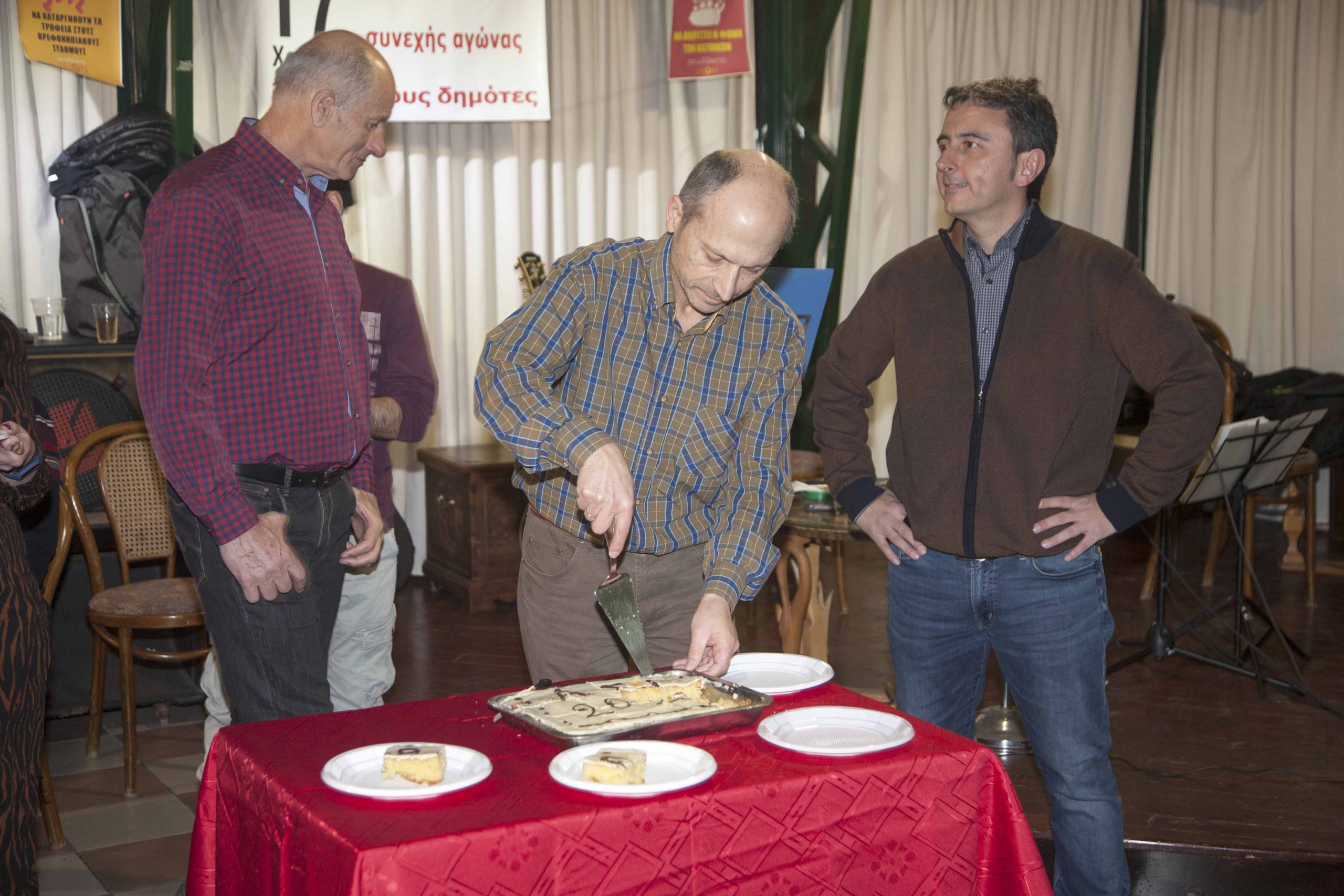 Η εκδήλωση συνεχίστηκε με την κοπή της πίτας από φίλους και συναγωνιστές του ασυμβίβαστου ΙΛΙΟΥ από τις γειτονιές του δήμου μας, εκφράζοντας την κατεύθυνση της παράταξης να συγκροτήσει κινήσεις διεκδίκησης ανά γειτονιά.