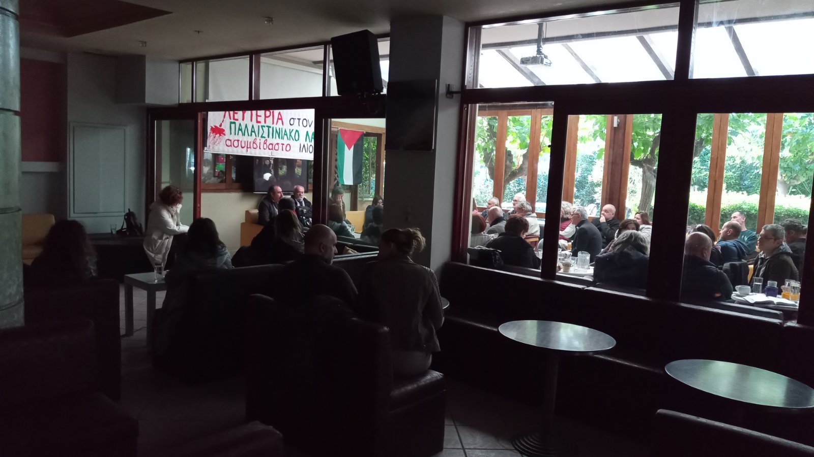 Ήταν μία πολύ ενδιαφέρουσα εκδήλωση. Οι κ.κ. Μιχιάρ Εκταμί  (πρόεδρος της Ένωσης Παλαιστινίων Εργαζομένων Ελλάδας) και Νασίμ Αλάτρας, (δημοσιογράφος, συγγραφέας, παραγωγός ντοκιμαντέρ «Γάζα ερχόμαστε» του Al Jazeera) παρέθεσαν τα ιστορικά στοιχεία και ανέλυσαν την κατάσταση στην Παλαιστίνη. Η συζήτηση ζωντάνεψε περισσότερο με τις ερωτήσεις και τοποθετήσεις των συναγωνιστών που παραβρέθηκαν. Δηλώσαμε ομόφωνα την συμπαράστασή μας στον αγωνιζόμενο Παλαιστινιακό λαό και δώσαμε το επόμενο ραντεβού για το Σάββατο 2 Δεκέμβρη στις 11π.μ. στην Πλατεία Ηρώ της Πετρούπολης, όπου μαζί με τον «Συντονισμό Συλλογικοτήτων και Αγωνιστών στα Δυτικά για την Παλαιστίνη» θα συγκεντρωθούμε και θα διαδηλώσουμε.